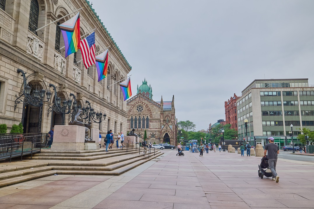 Copley Square, located in Boston’s Back Bay, is home to iconic landmarks like Trinity Church, the Boston Public Library, and the John Hancock Tower, blending history and modern elegance.